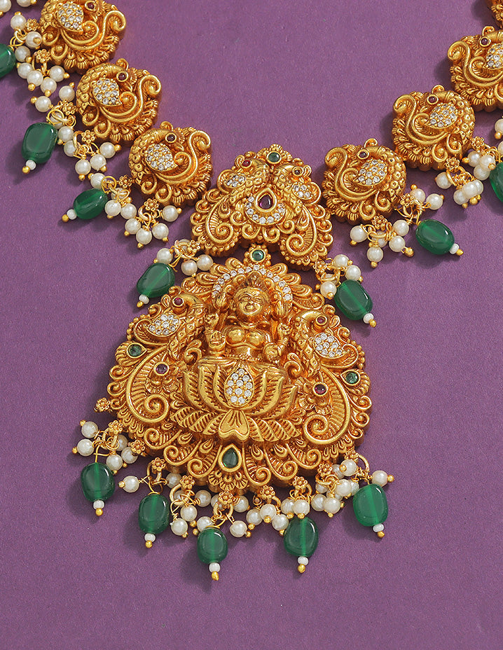 Designer Elegant Mango Shaped Lakshmi Devi Matt Kempu Necklace Set