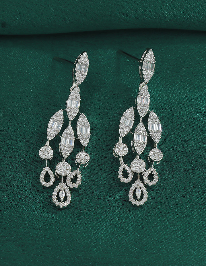 This Designer Zirconia Elegance Necklace Set features brilliant white stones set with a lustrous rhodium polish for enduring shine. Expertly crafted to add timeless sophistication and sparkle to any ensemble.