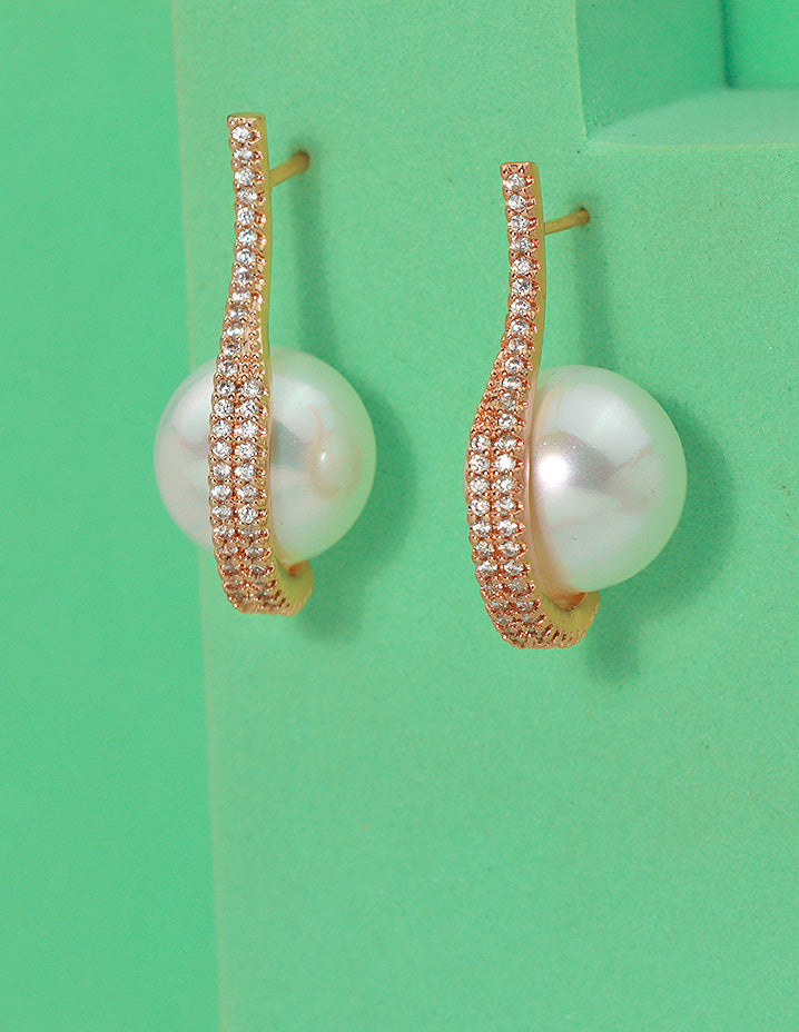 Grace meets glamour—these pearl Studs wrapped in shimmering gold and crystals are your go-to for a regal statement at any celebration.