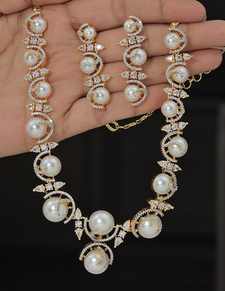 Designer Zirconia Pearl Whirl Elegance Necklace Set