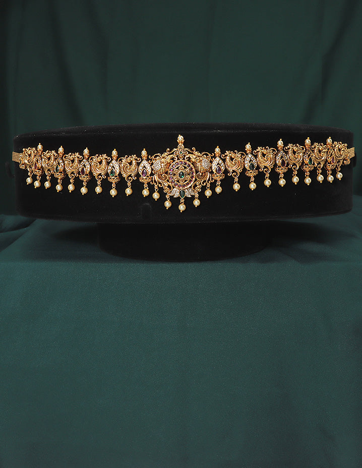 Delicately designed with CZ stones, this chic and ethnic chain Vaddanam adds a touch of elegance to any outfit. Perfectly pairs with a variety of styles, unleash your creativity with this hip belt.