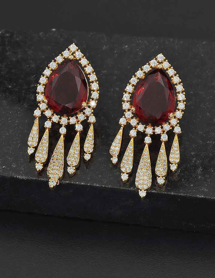 Designer Zirconia Gold Polish Crimson Royal Drop Dangler Earrings