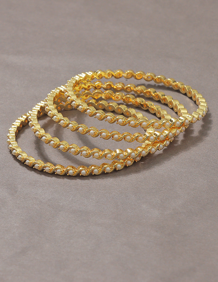 Delicately crafted gold-toned bangles with embedded clear stones—radiating subtle sparkle and timeless elegance for every occasion.