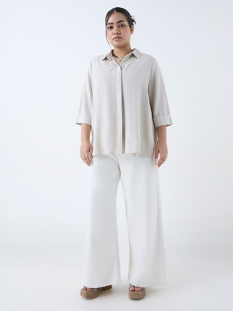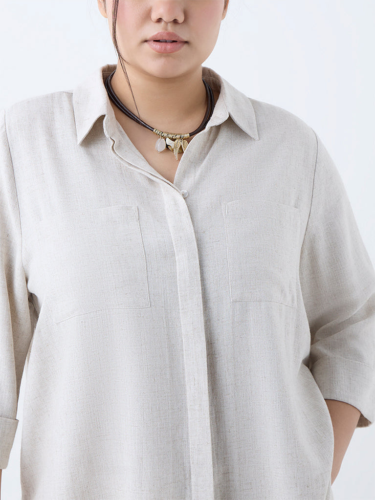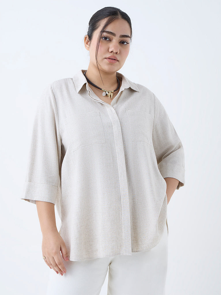 This beige shirt from Gia is created from a sumptuous linen-blend material that keeps you comfortable through the day. Designed with a structured collar and concealed button placket, it’s finished with three-quarter sleeves and dual chest pockets that add a utilitarian-chic touch.
