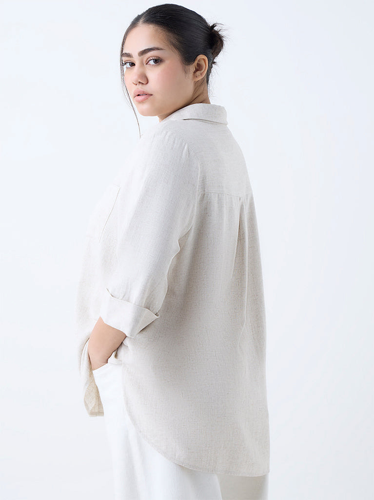 Ascot Beige Checks Design Relaxed-Fit Linen Shirt