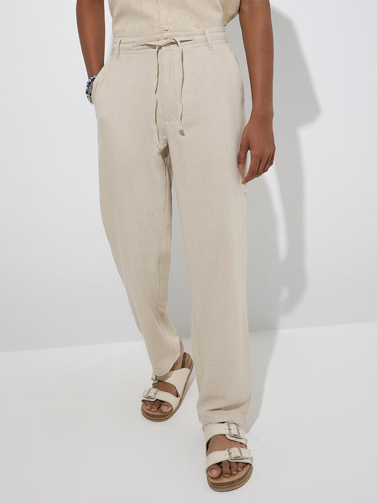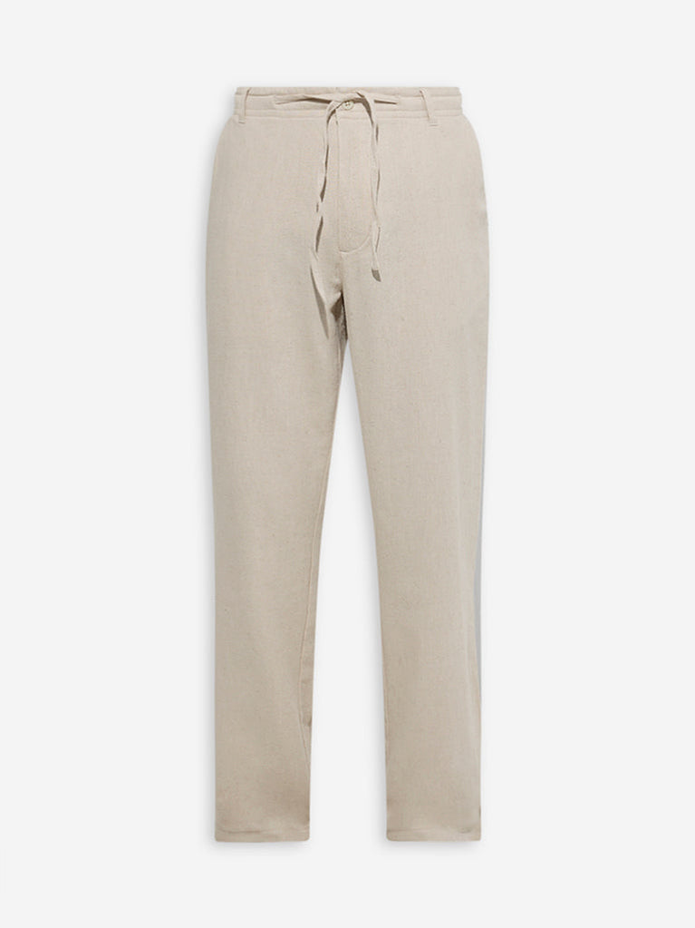 Ascot Beige Relaxed-Fit Mid-Rise Cotton-Blend Chinos