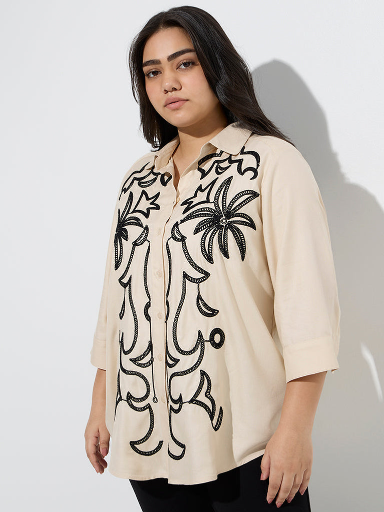 This beige shirt from Gia is fashioned with leaf embroidery for a refined touch. Crafted from a lightweight fabric, it’s styled with a classic collar, a button placket, and full sleeves with buttoned cuffs.
