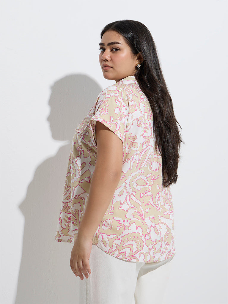 Gia Beige Scenic-Inspired Cotton-Blend Shirt