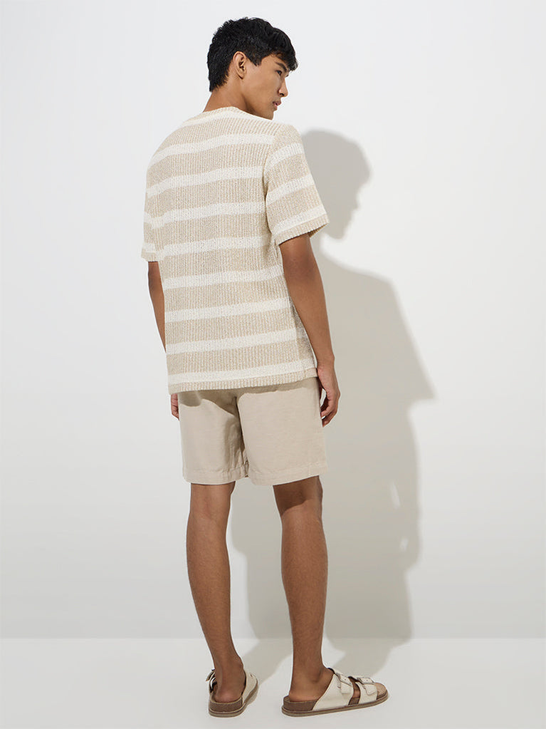 ETA Beige Relaxed-Fit Mid-Rise Cotton Shorts
