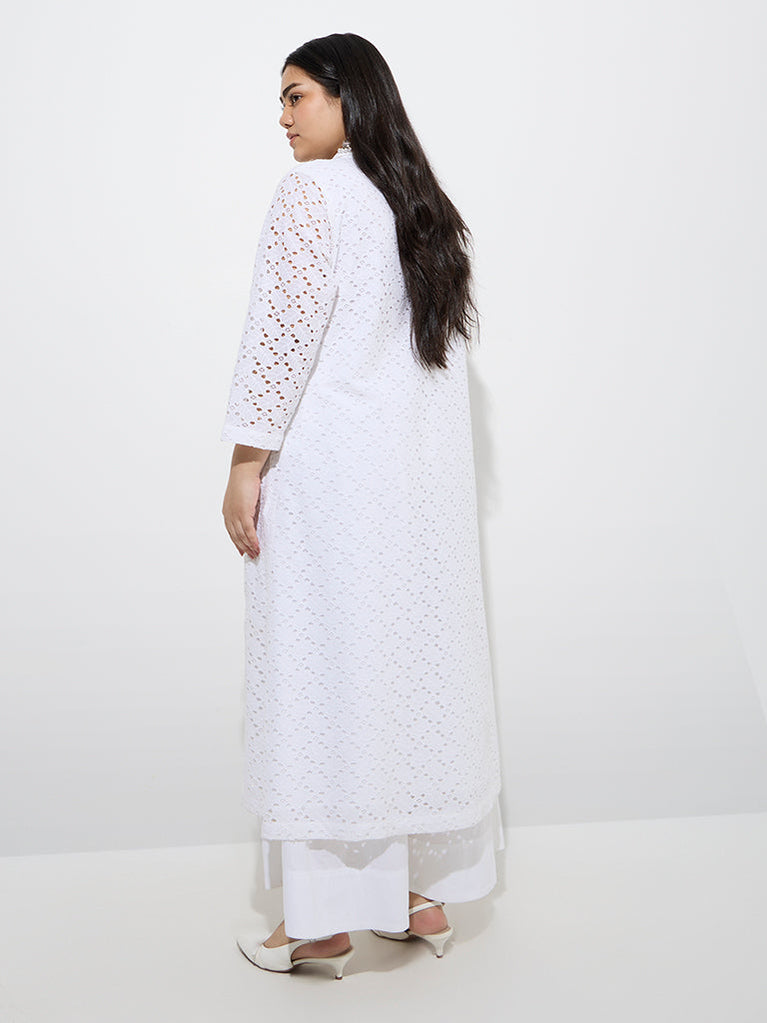 Diza White Schiffli Embroidered A-Line Cotton Kurta