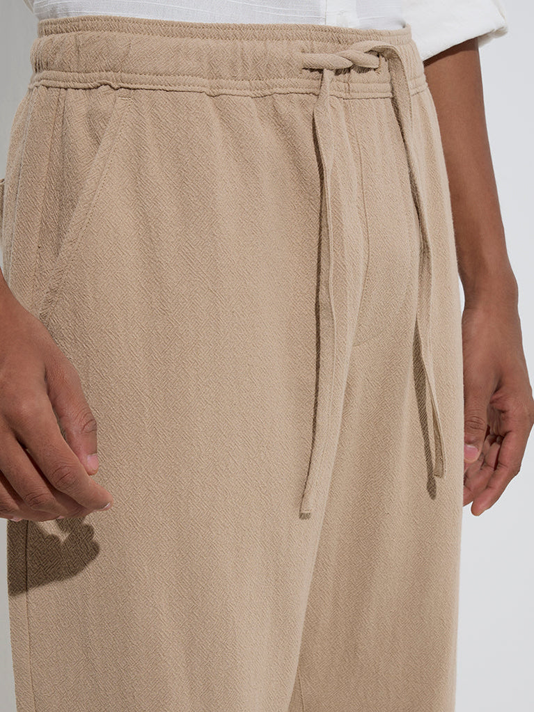 These taupe chinos from ETA redefine casual elegance with their relaxed fit. Milled from pure cotton for daily comfort, they’re designed with an elasticated waistband and drawstring fastening, making them a versatile staple for effortless style.