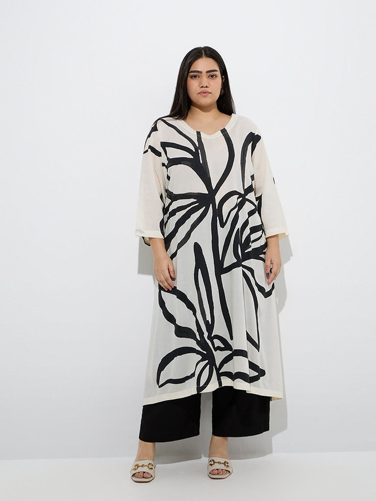Diza introduces this off-white kurta featuring abstract prints that bring a contemporary flair to everyday ethnic wear. Sculpted in a flattering A-line silhouette from a breathable fabric, it offers all-day comfort with effortless style. A discreet slip pocket adds a practical touch, making it as functional as it is elegant.