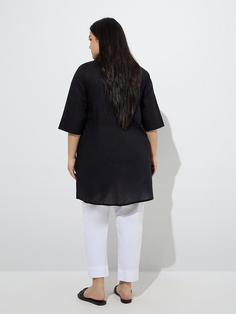 Diza Black Leaf Embroidered Cotton Kurti