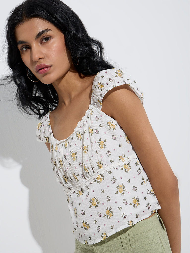 Bombay Paisley White Floral Printed Cotton Top