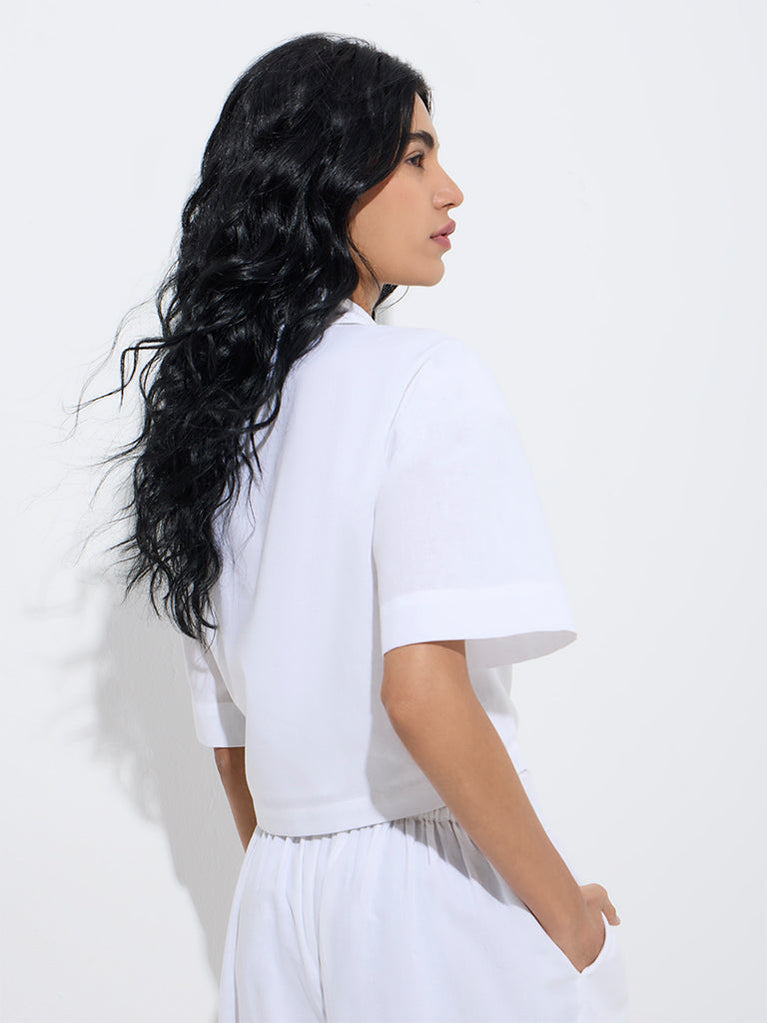 ETA White Embroidered Relaxed-Fit Linen Shirt