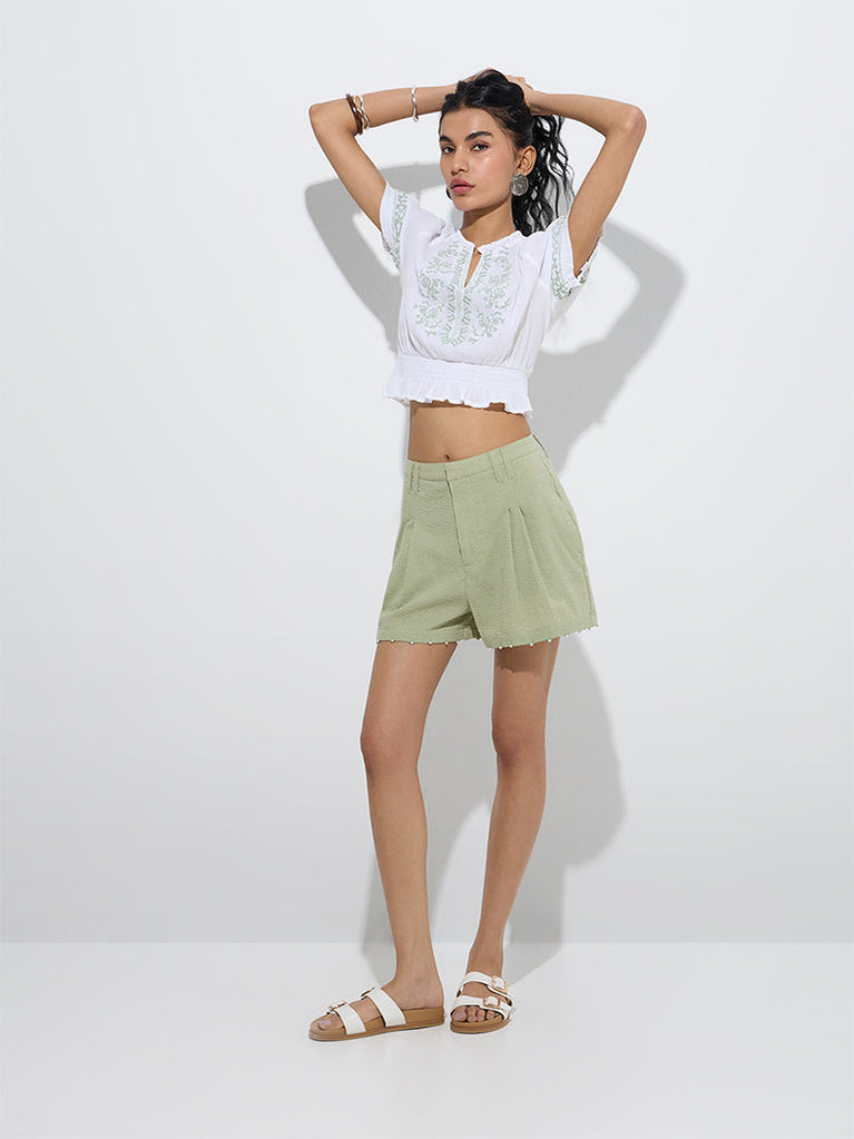 Bombay Paisley Sage Embroidered Cotton-Blend Top