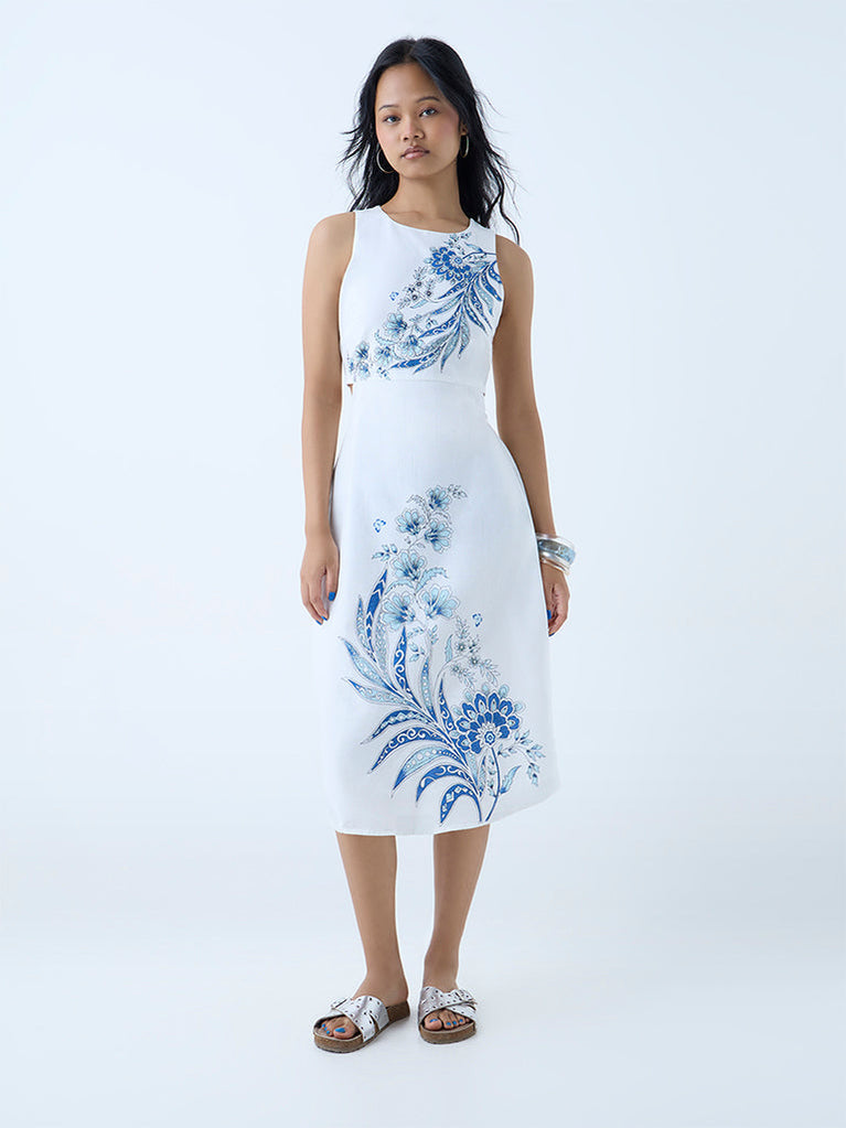 Bombay Paisley White Floral Cotton-Blend Sheath Dress