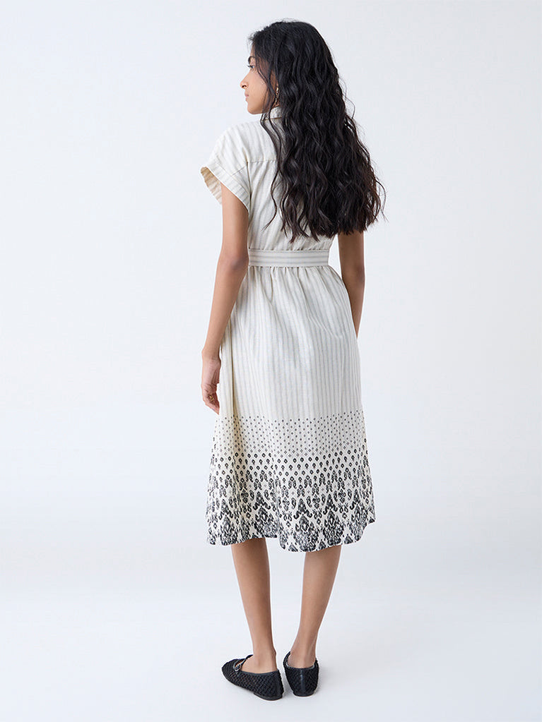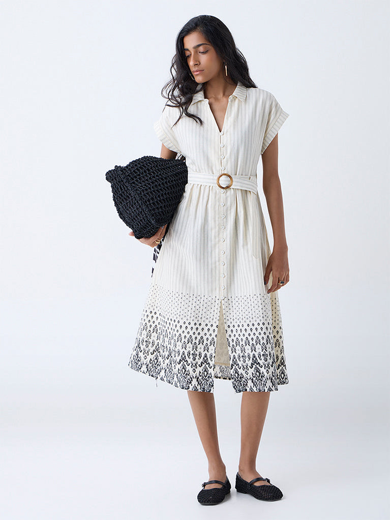 Bombay Paisley Off-White Cotton Shirt Dress with Belt