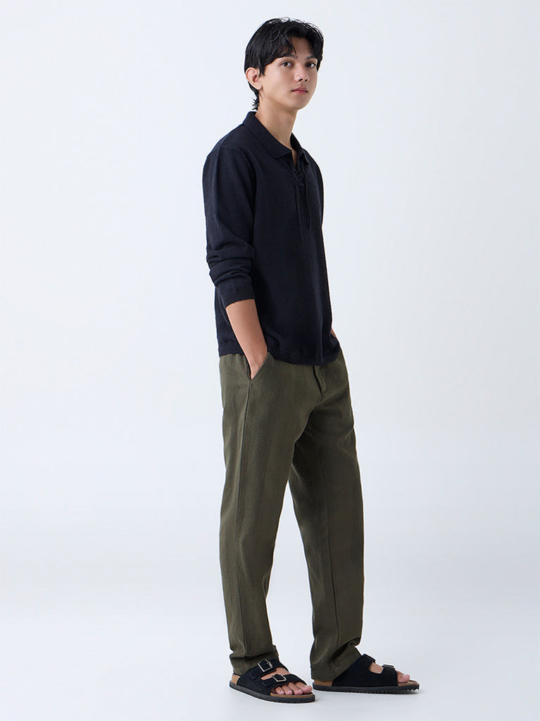 ETA Olive Knit-Textured Relaxed-Fit Sweater