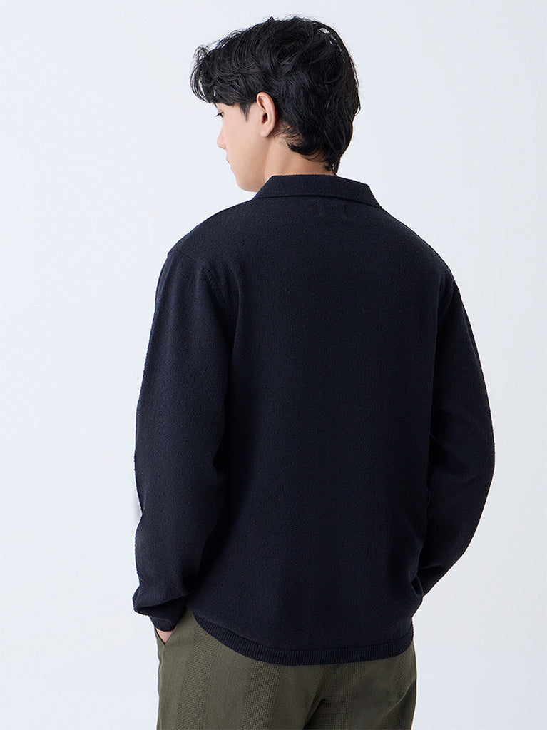 ETA Black Knit-Textured Relaxed-Fit Sweater
