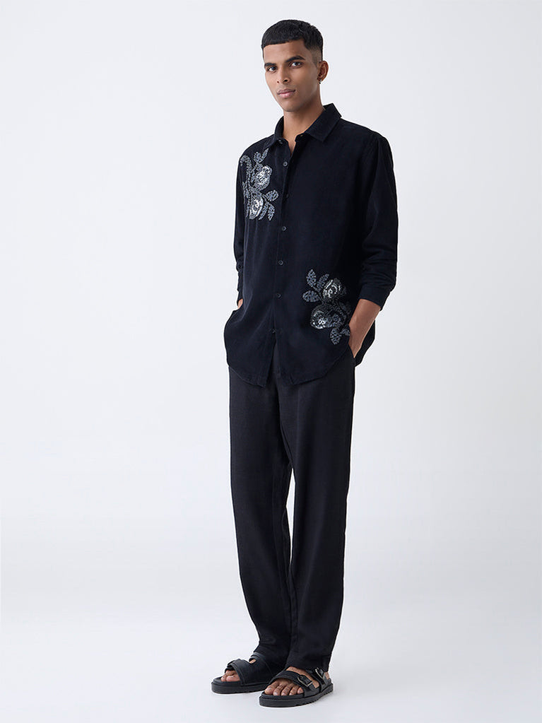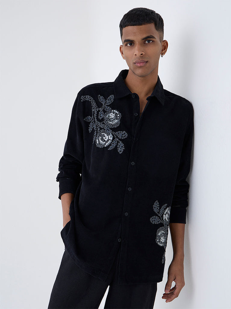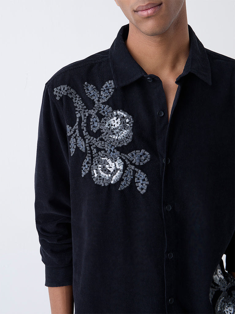 ETA Black Embroidered Relaxed-Fit Cotton Shirt