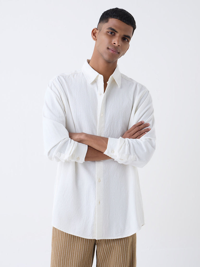 ETA White Solid Relaxed-Fit Cotton Shirt