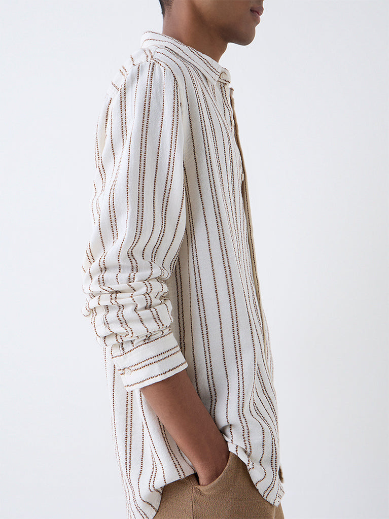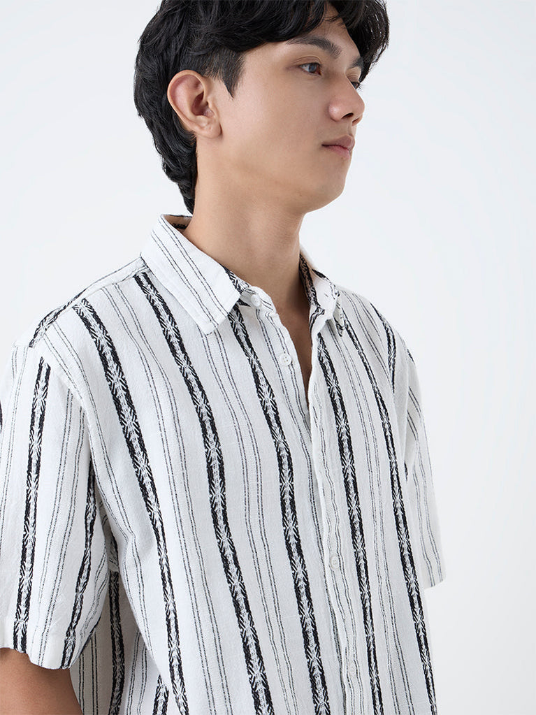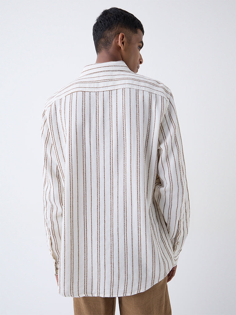 ETA White Striped Relaxed-Fit Cotton Shirt