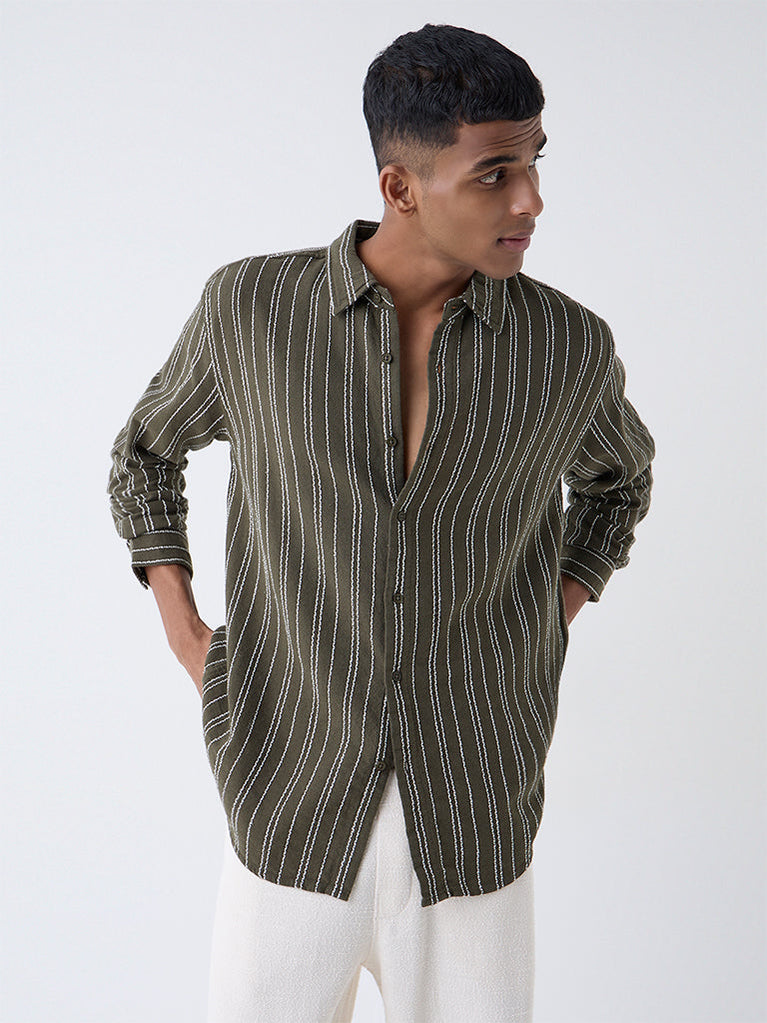 ETA Olive Striped Relaxed-Fit Cotton Shirt