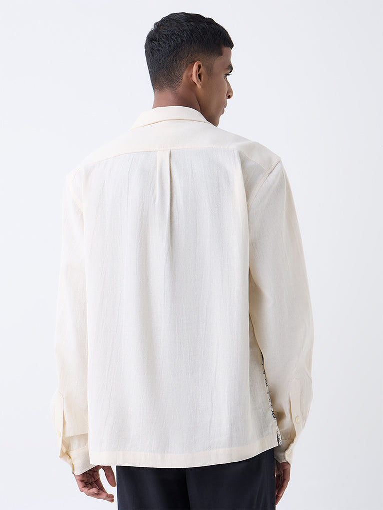 ETA Off-White Embroidered Relaxed-Fit Cotton Shirt