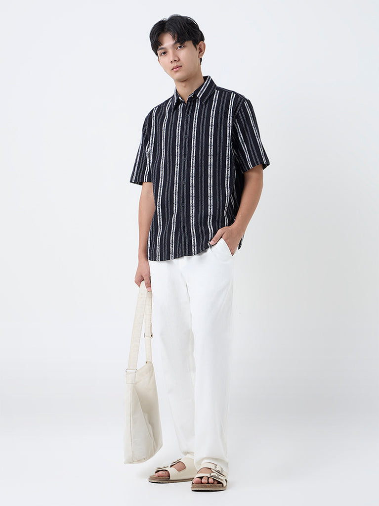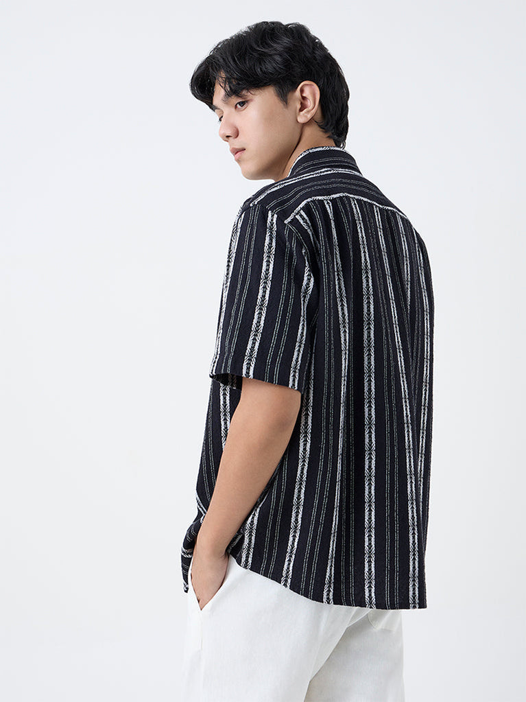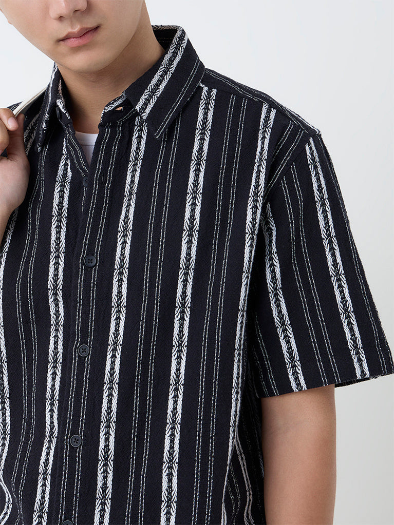 ETA Black Striped Relaxed-Fit Cotton Shirt