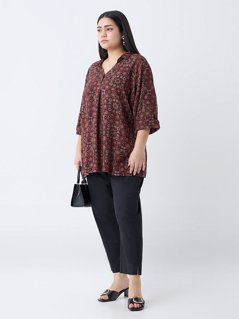 Bombay Paisley Black Floral Pattern Cotton-Blend Top