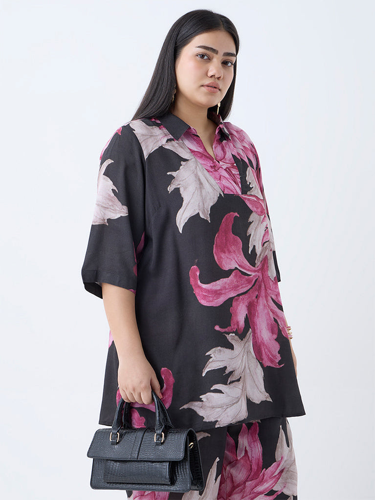 Bombay Paisley Black Floral Embroidered Cotton-Blend Top
