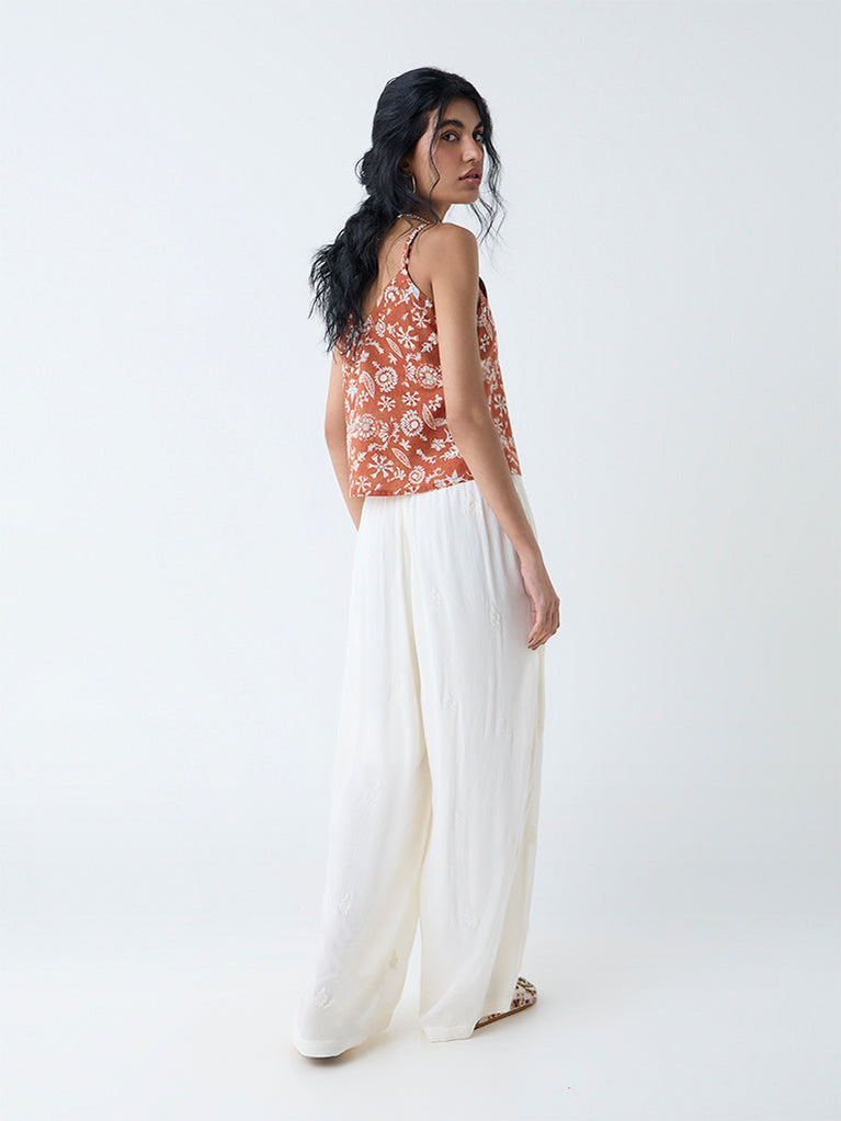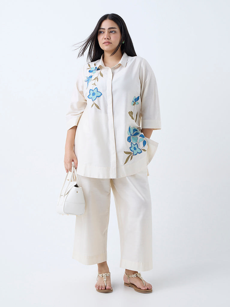Bombay Paisley Off-White Floral Embroidered Cotton Top
