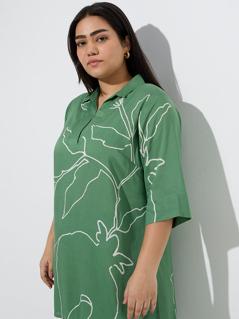 This green kurti from Diza boasts botanical prints that lend a modern edge to your ethnic wardrobe. Shaped in a flattering A-line silhouette from a lightweight fabric, it features a spread collar and three-quarter sleeves for a polished yet breezy finish.