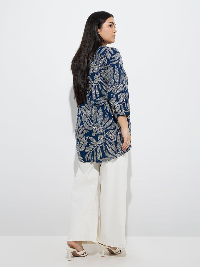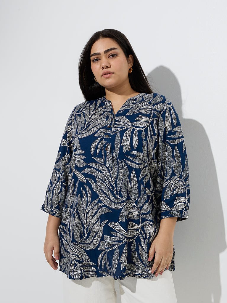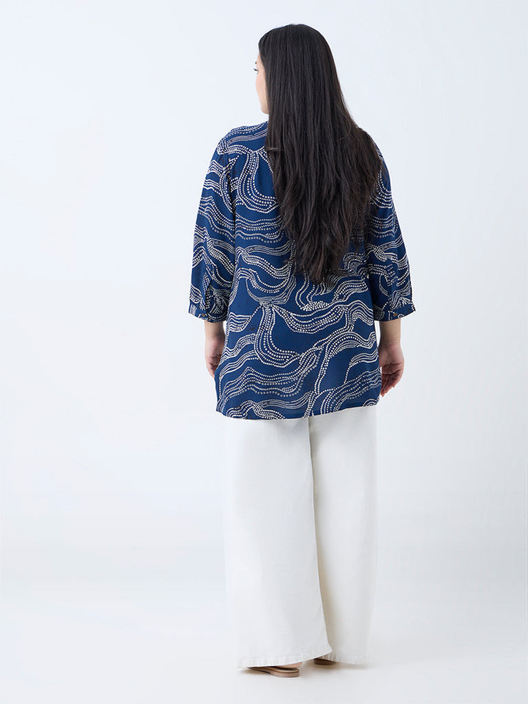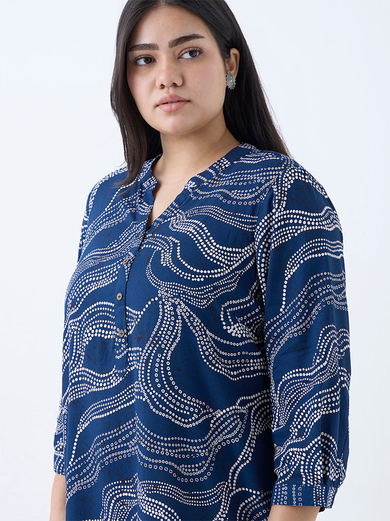 This indigo tunic from Diza showcases an all-over bandhani print that blends traditional charm with everyday ease. Designed with a notched neckline, a button placket and three-quarter sleeves, it’s a versatile pick for effortless day dressing.
