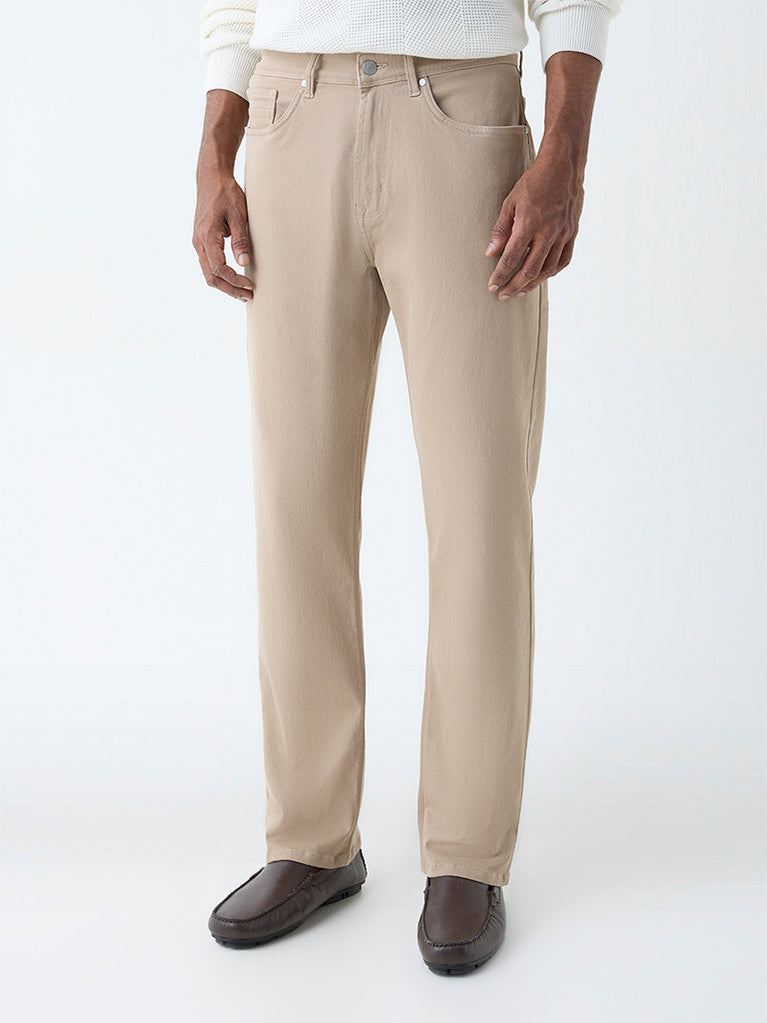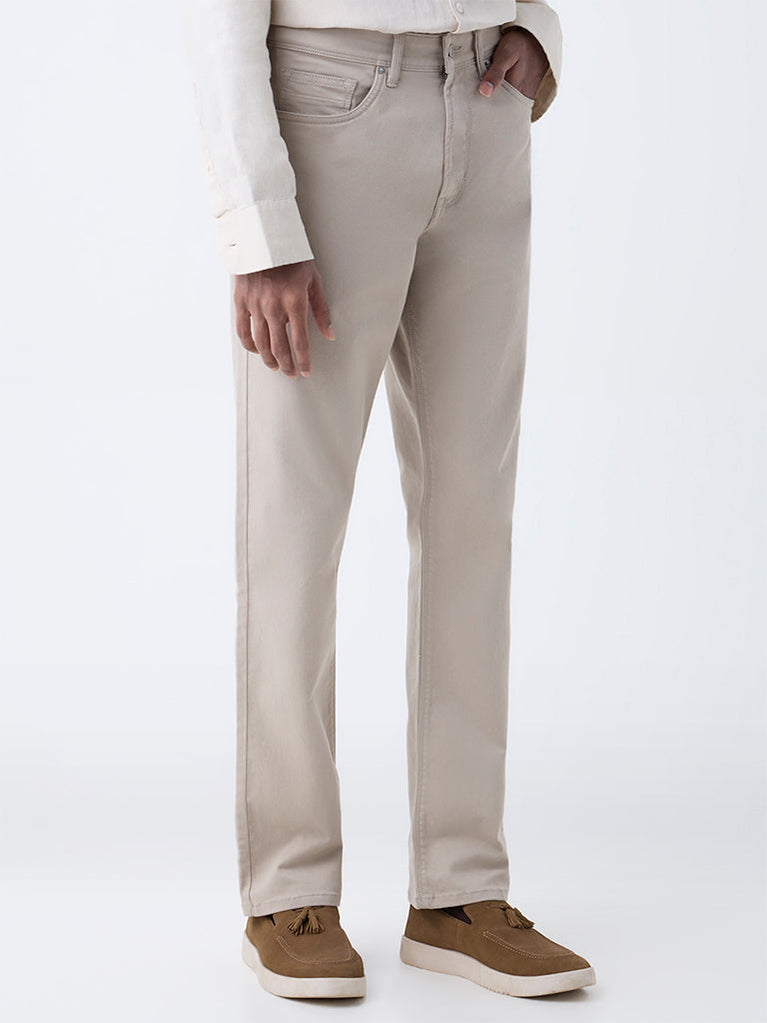 Ascot Beige Solid Relaxed-Fit Mid-Rise Jeans