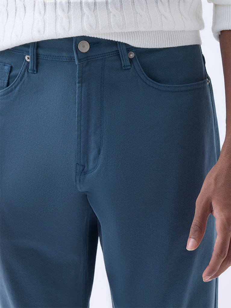 Ascot brings these teal jeans, constructed from sturdy cotton-blend fabric in a relaxed silhouette. Designed with a mid-rise waist, they feature a buttoned closure, zipper fly and belt loops. Finished with multiple pockets, this pair is a refined essential for laid-back yet polished looks.