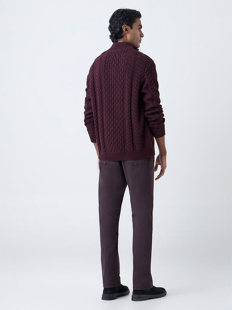 Strike a balance between versatility and style with these brown jeans from Ascot. Carved in a relaxed silhouette, the mid-rise pair is constructed from a breathable fabric that ensures ease of wear while retaining a refined shape. A buttoned waistband, belt loops, and zipper fly lend a classic finish, while multiple pockets add practical appeal.