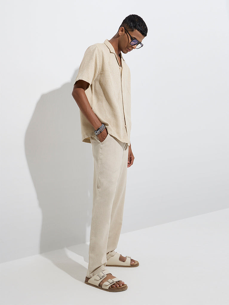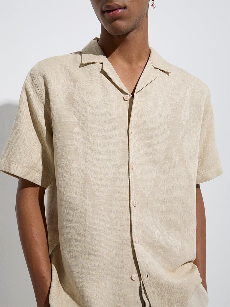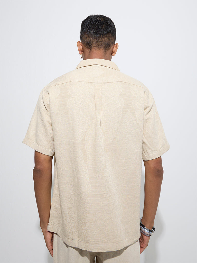 ETA Beige Self-Patterned Relaxed-Fit Cotton Shirt