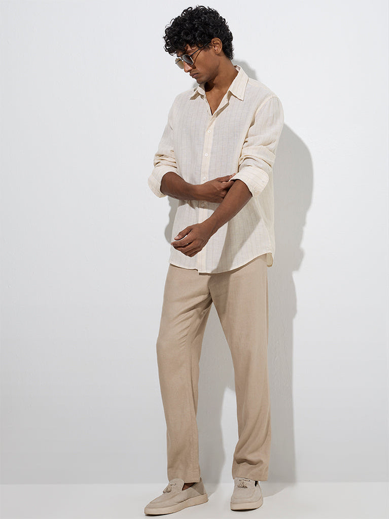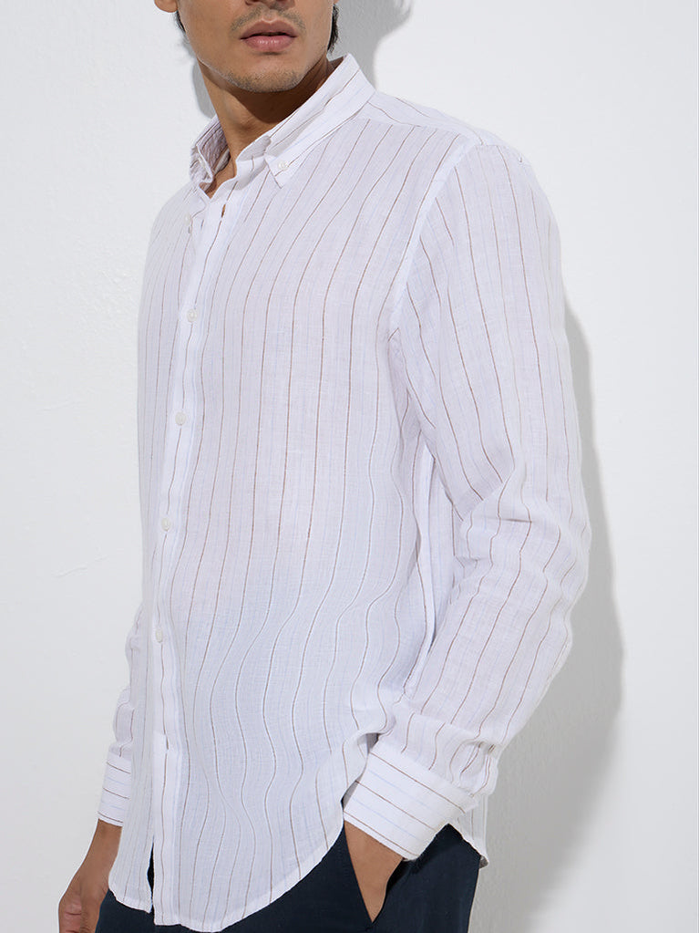 Ascot White Stripe Printed Relaxed-Fit Linen Shirt