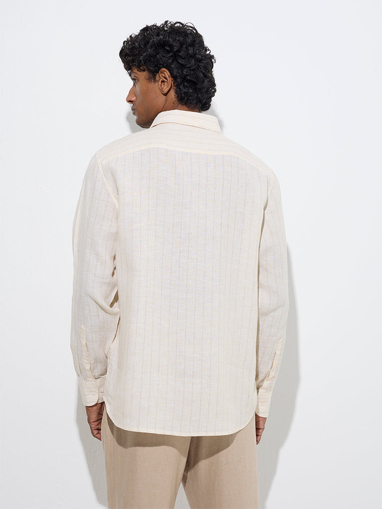 Ascot Light Yellow Striped Relaxed-Fit Linen Shirt