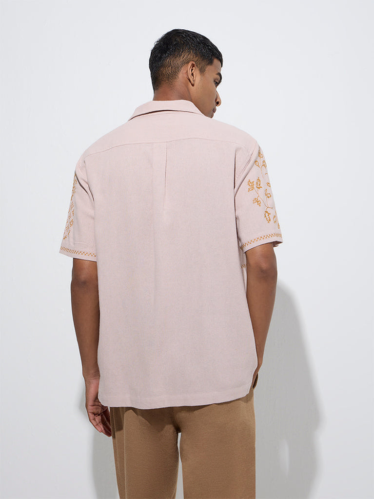 ETA Dusty Pink Embroidered Relaxed-Fit Cotton Shirt