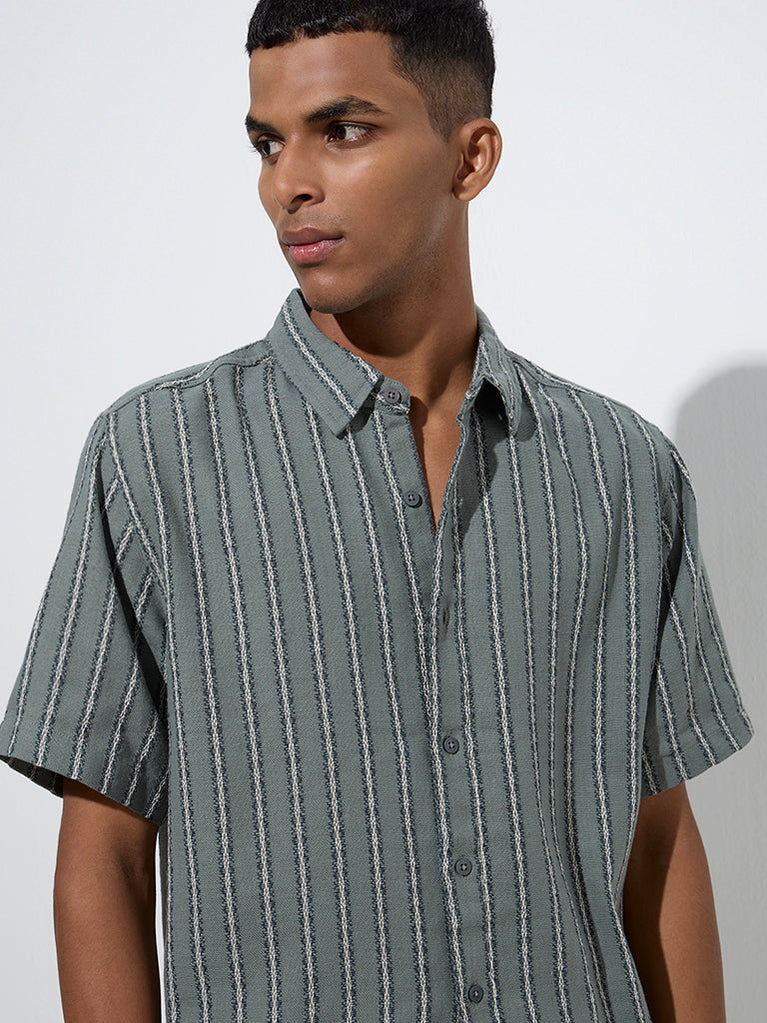 ETA Sage Stripe Printed Relaxed-Fit Cotton Shirt