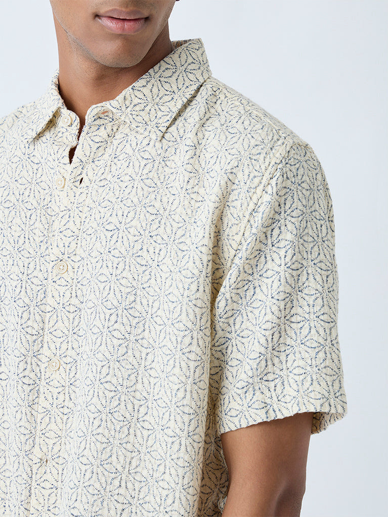 ETA Off-White Floral Pattern Relaxed-Fit Cotton Shirt