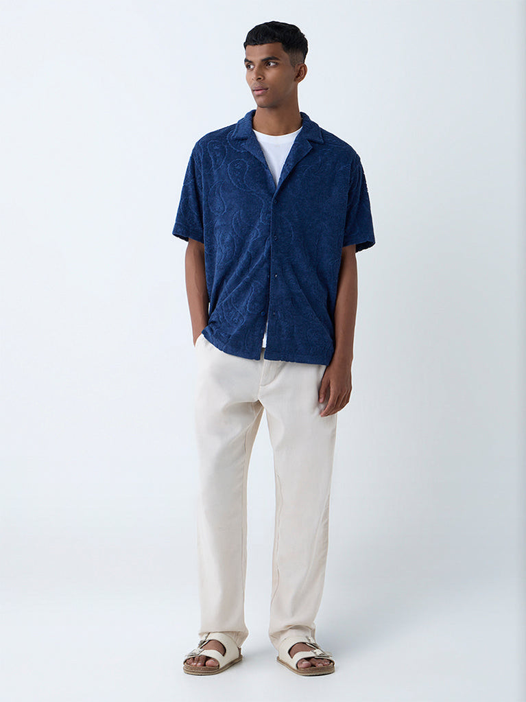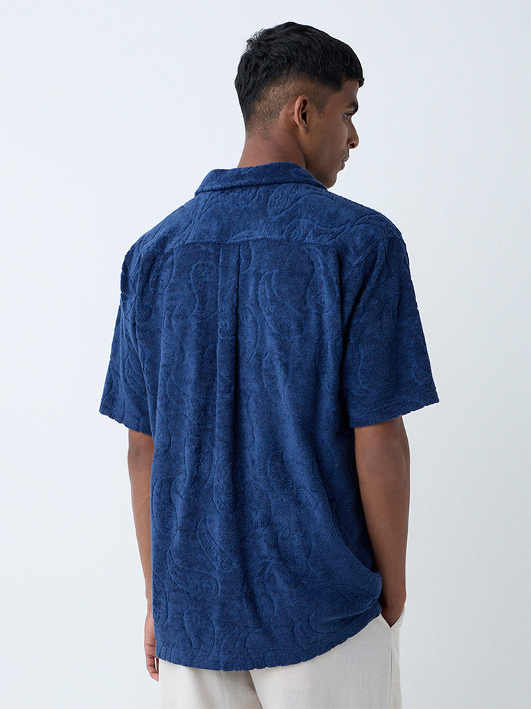 ETA Navy Paisley Design Relaxed-Fit Cotton-Blend Shirt