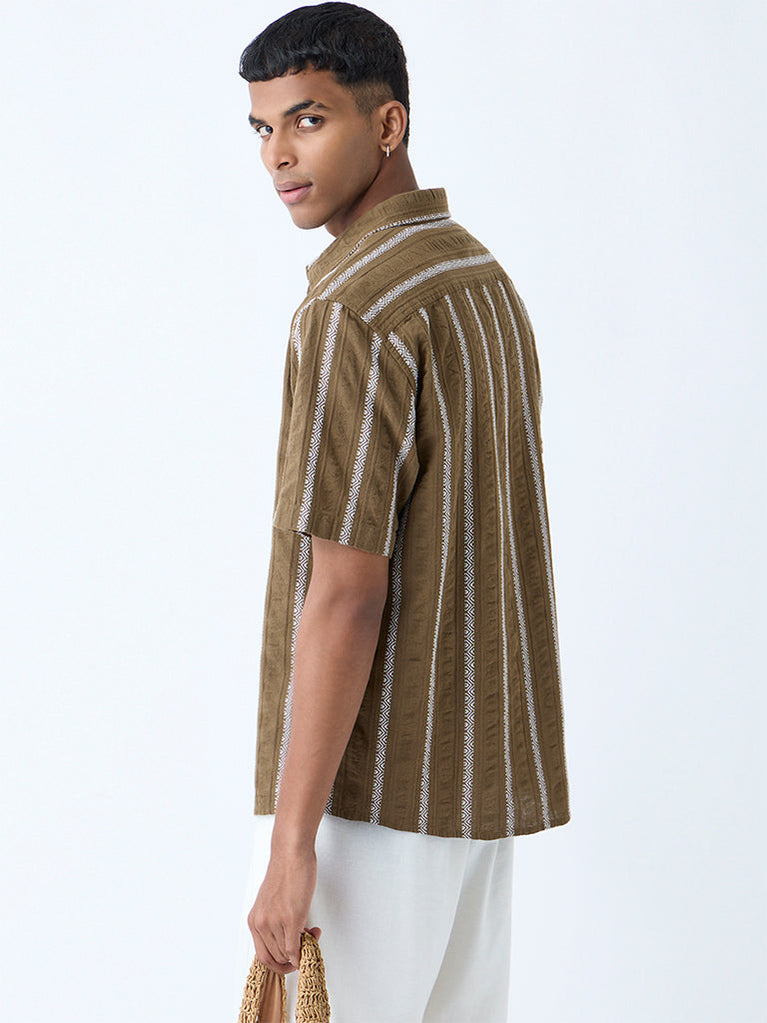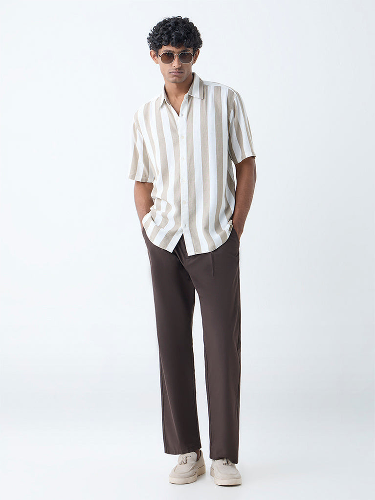 ETA Brown Stripe Relaxed-Fit Cotton-Blend Shirt