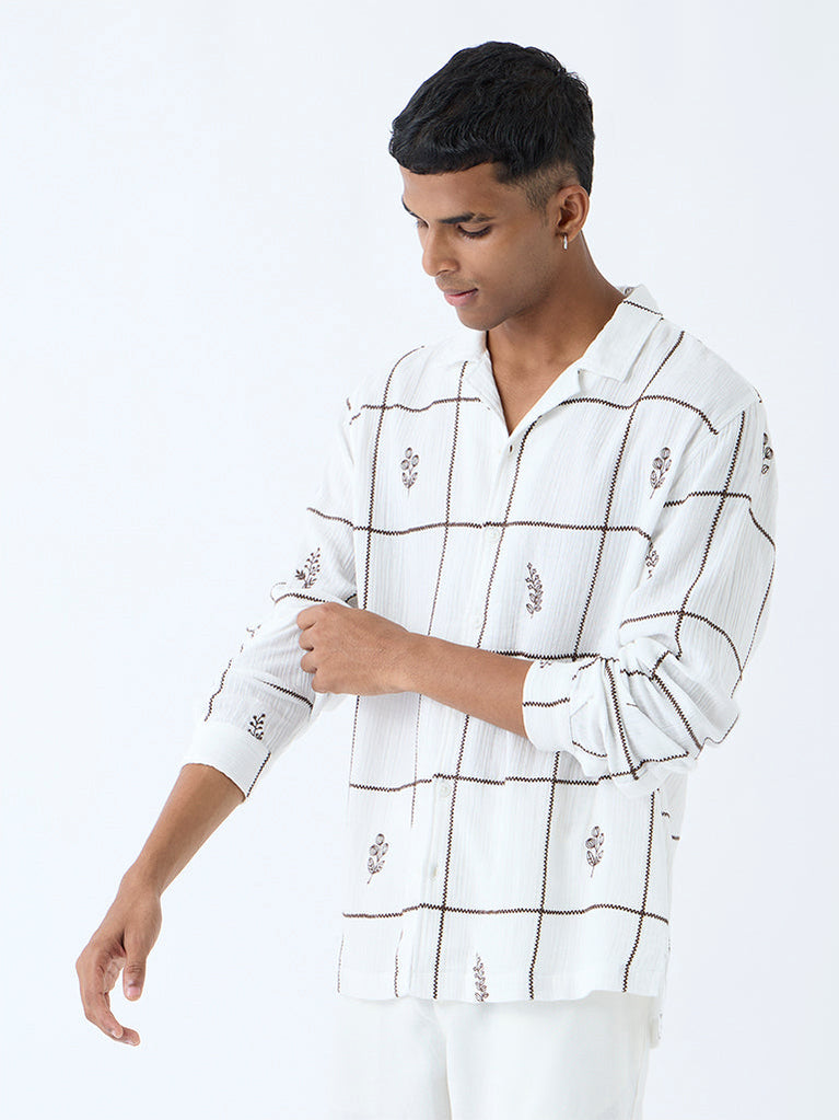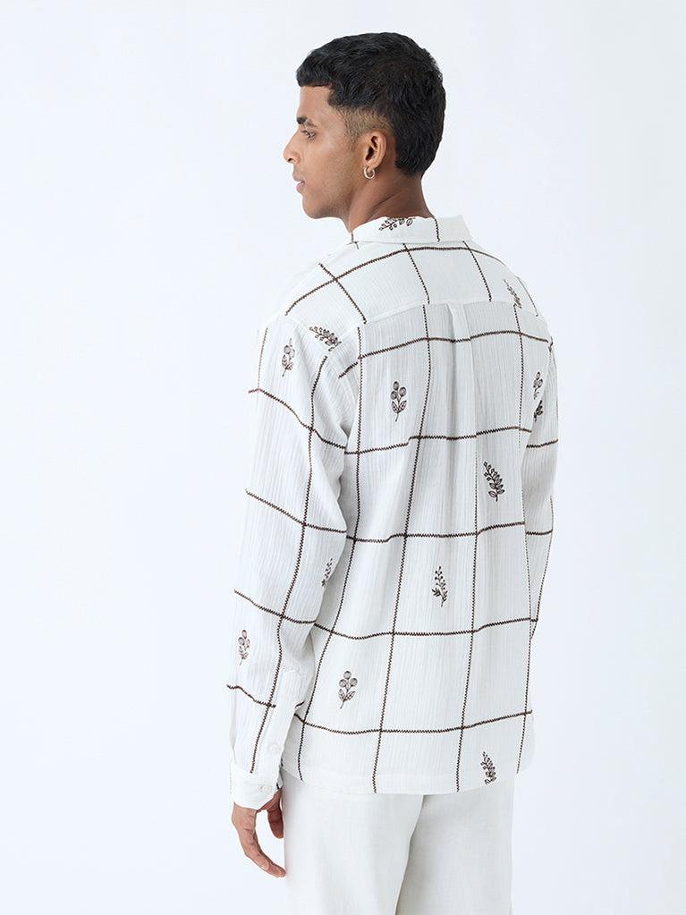 ETA White Checks Detailed Relaxed-Fit Cotton Shirt