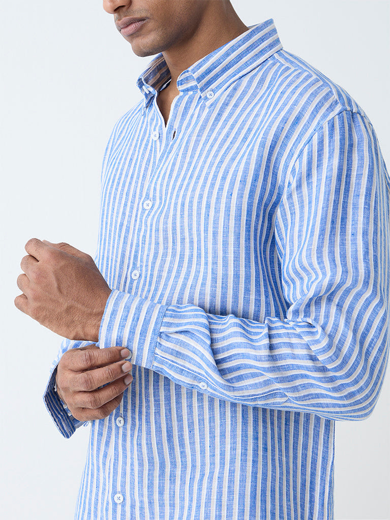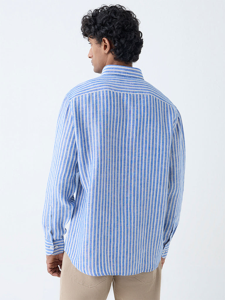 Ascot Blue Striped Relaxed-Fit Linen Shirt