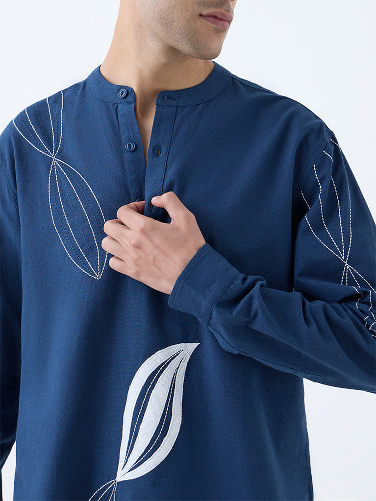 ETA Navy Embroidered Relaxed-Fit Cotton Shirt