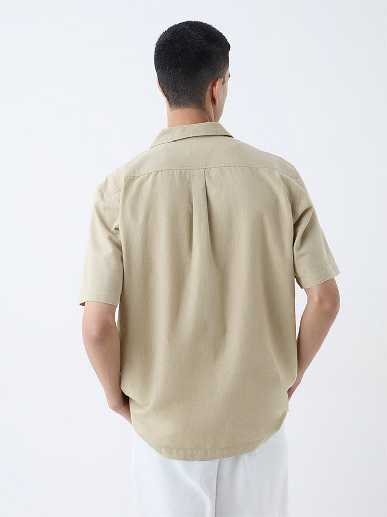 ETA Beige Embroidered Relaxed-Fit Cotton Shirt